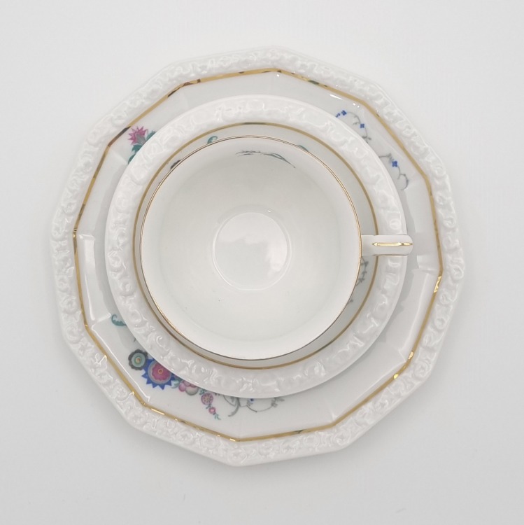 Model Maria zaprojektował Philip Rosenthal w 1916 roku - to już ponad 100 lat tworzenia porcelany w tym wzorze .Wycisk roślinny kryje śródziemnomorskie owoce granatu.